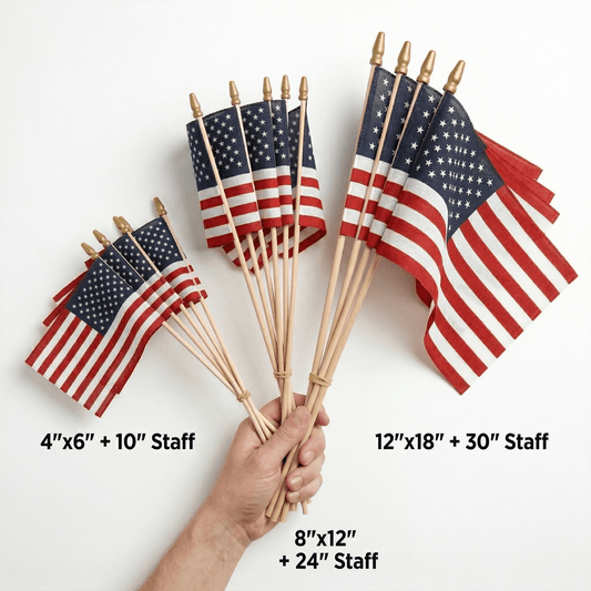 Celebrate patriotism and pride with our curated selection of Stick Flags! Perfect for parades, parties, classrooms, and decorating gravesites, this collection features high-quality handheld flags of various sizes and designs, including the US flag, state flags, and international options. Easy to wave, fun to display, and made to last. Shop our best-selling stick flags today!